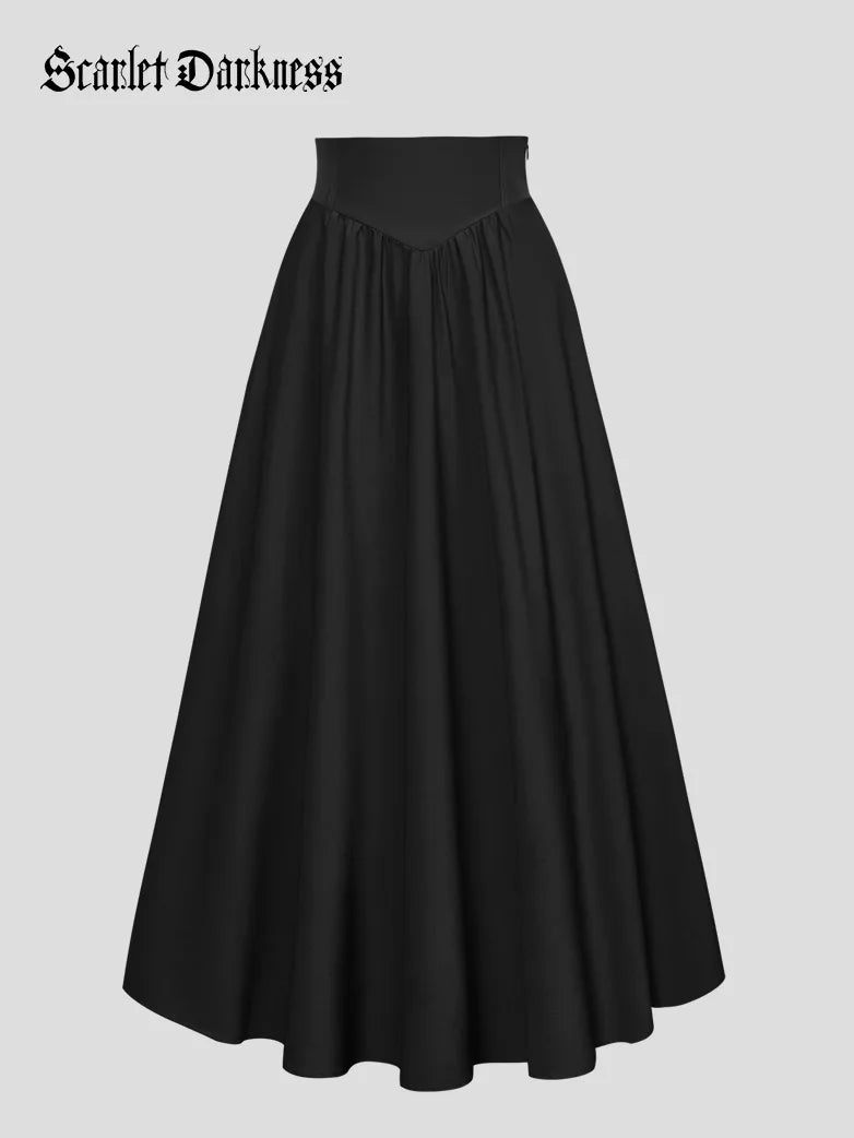 Scarlet Darkness Damen-Renaissance-Maxirock Elastischer Rock mit hohem Bund und Taschen